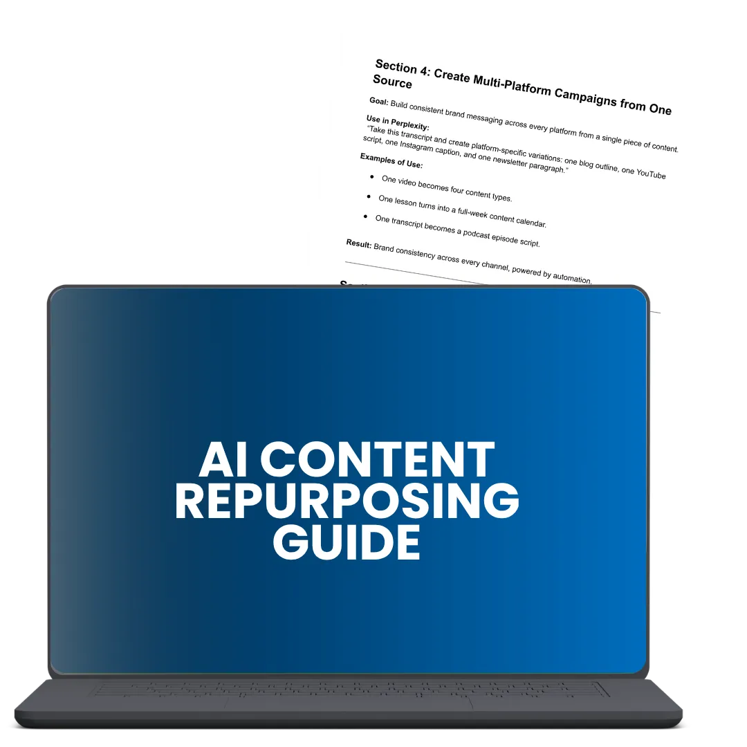 BONUS #3: AI Content Repurposing Guide – A complete method for turning one idea or transcript into a full library of content across multiple platforms without repeating yourself.