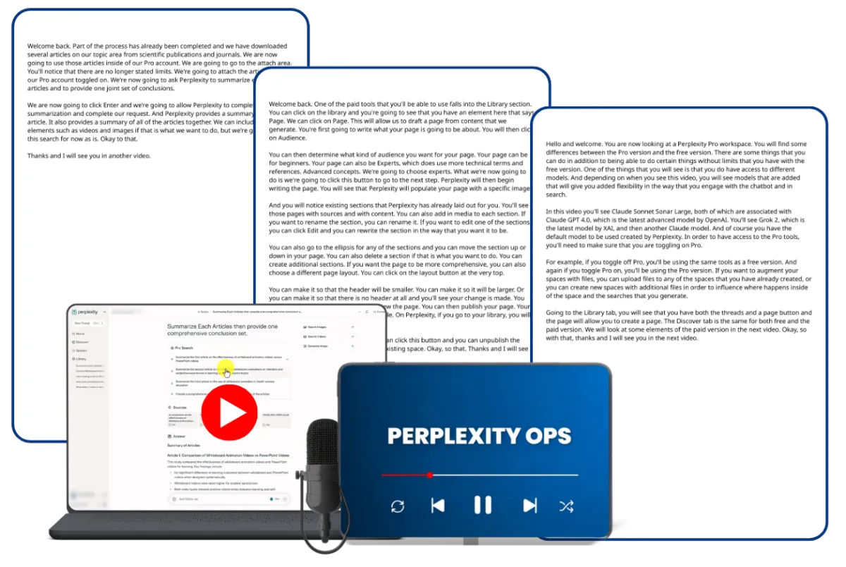 AI Research and Workflow Training: The full video and audio training series that guides you through every feature of Perplexity, from structured research to automated content creation.